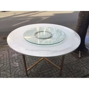 – Kích thước: vòng xoay nhôm đường kính 30cm, mặt kính trong suốt, cường lực tròn đường kính 60cm, mài bóng cạnh dày 10 ly