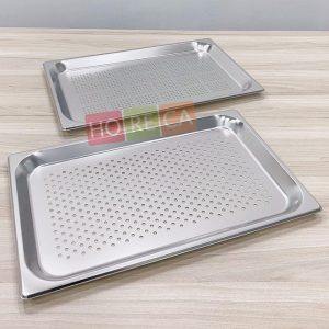 Khay G/N Inox 1/2 đục lỗ nhỏ, lớn (L327xW265mm) Đựng Thực Phẩm, Đựng Thạch Topping, Thức Ăn, gà chiên