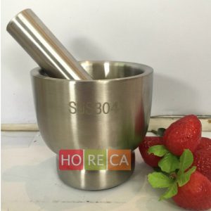 Bộ cối chày dầm gia vị inox dày 304 nguyên khối, có nắp đậy, chuyên dùng cho bếp nhà hàng