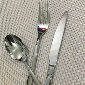 Bộ dao muỗng nĩa 3 món inox 304 kiểu đuôi ngang viền cổ cao cấp theo chuẩn 18/10, bộ dao thìa nĩa đẹp