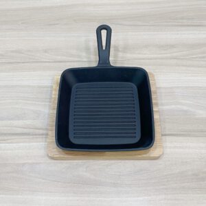 Chảo gang vuông có tay cầm đế gỗ DBFP137 ( 13.7xH2.2cm )