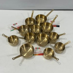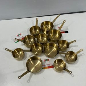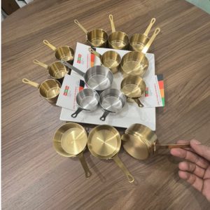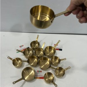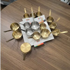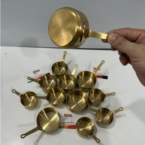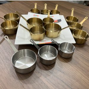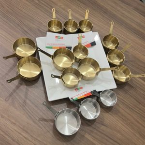 Chén rót sốt đựng nước chấm được làm bằng chất liệu inox mạ vàng, thường được sử dụng trong các nhà hàng, bếp ăn công nghiệp,…