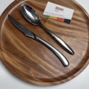 – Kiểu dáng trơn bóng, đuôi cong, uốn cong phần thân nhằm giúp dao nĩa ôm sát lòng bàn tay khi cắt thịt bò