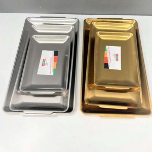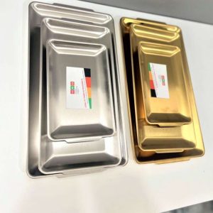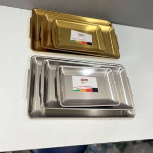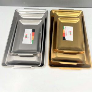 Dĩa Inox chữ nhật có tay cầm – dùng để trang trí đựng thức ăn, làm khay trà rượu, bánh mứt hoặc dùng trong y tế /Spa