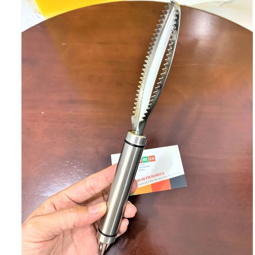 Dụng cụ đánh vẩy cá giúp làm sạch vẩy cá nhanh chóng, không bị bắn vẩy ra ngoài, thường được sử dụng trong bếp nhà hàng