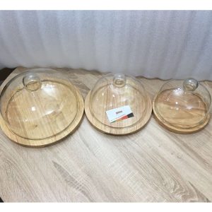 Chất liệu: nắp thủy tinh + đế gỗ tròn