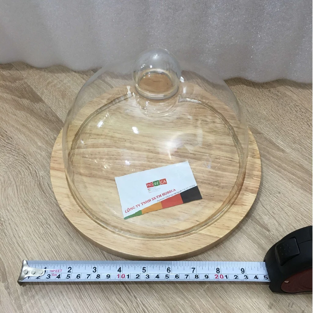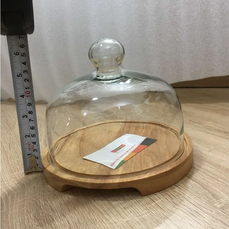 Chất liệu: nắp thủy tinh + đế gỗ tròn