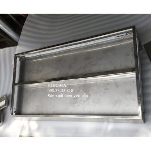 - Bộ bao gồm 14 khay inox (327x176x65mm), khung inox có máng giữ đá và thoát nước