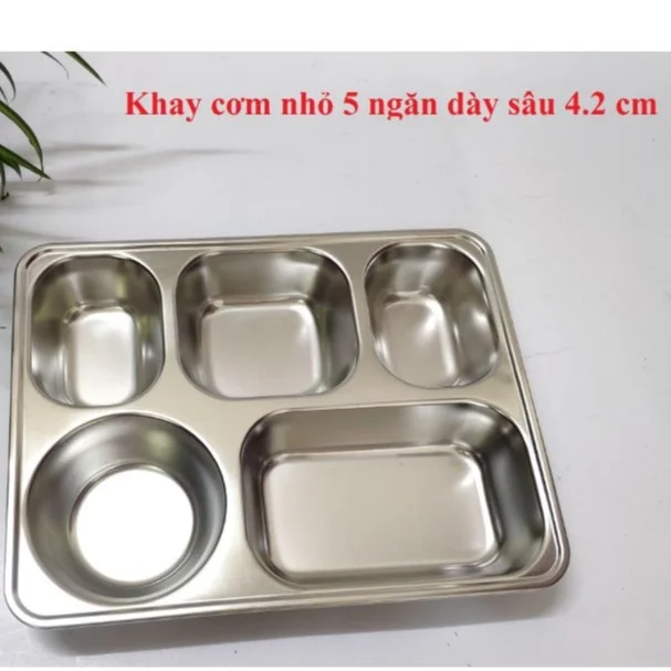 – Khay đựng cơm Inox 304 có 5 ngăn