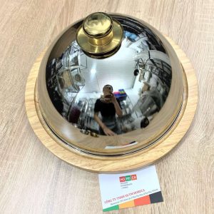 – Sản phẩm chỉ có nắp chụp INOX (có núm cầm phía trên), KHÔNG bao gồm đế gỗ