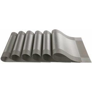 Tấm lót bàn ăn placemat kẻ viền xám bạc đẹp kích thước 30 x 45cm dành cho bàn ăn gia đình, nhà hàng