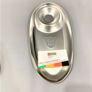 Đĩa (dĩa) Inox 304 hàn quốc, khay đựng khoai tây chiên, có ngăn chia đựng tương, hình bầu dục, inox vàng, inox trắng
